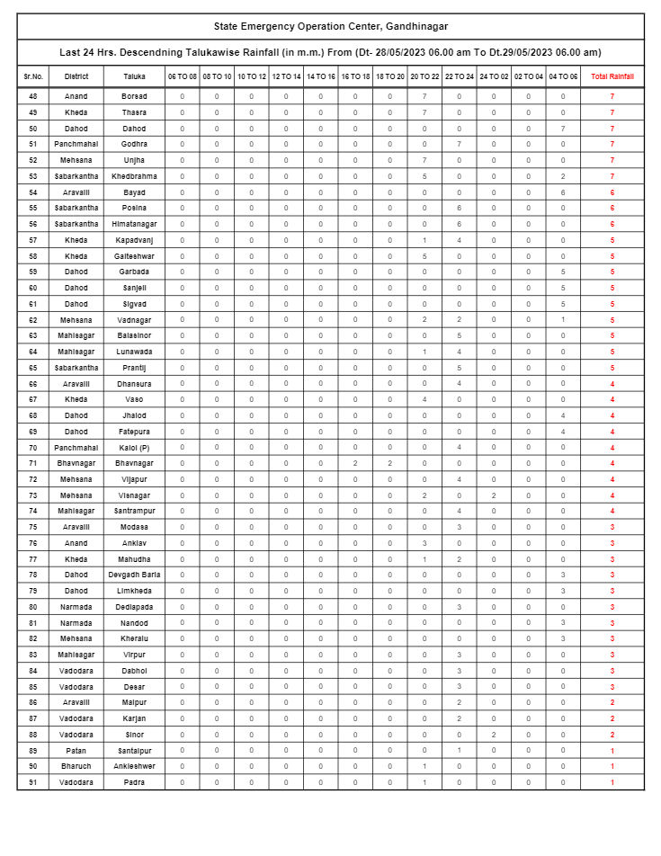 24 કલાકમાં રાજ્યના 91 તાલુકામાં વરસાદ