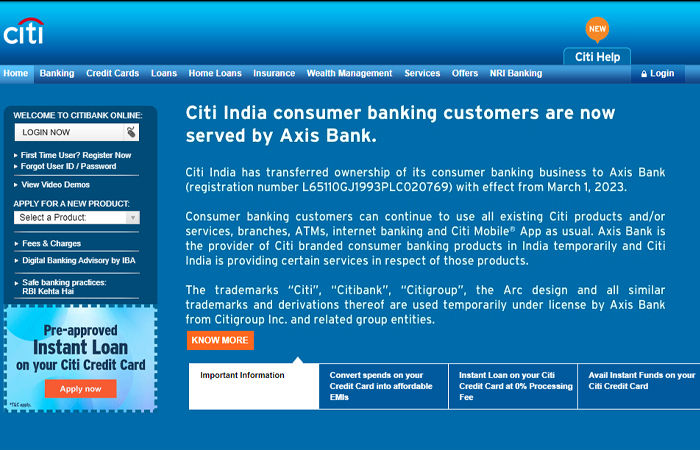 ભારતમાં સિટી બેન્કનો રિટેલ બિઝનેસ આજથી એક્સિસ બેન્કને ટ્રાન્સફર થઈ જશે. તેની સાથે જ સિટી કન્ઝ્યૂમર બિઝનેસને ટ્રાન્સફર કરવાની પ્રક્રિયાનો અંતિમ તબક્કો પૂર્ણ થઈ જશે જે ગત વર્ષે માર્ચમાં શરૂ થયું હતું. ભારતમાં સિટી બેન્કના રિટેલ બિઝનેસમાં ક્રેડિટ કાર્ડ અને વ્યક્તિગત લોન, રિટેલ બેન્કિંગ તથા વીમા સેવા સામેલ છે.