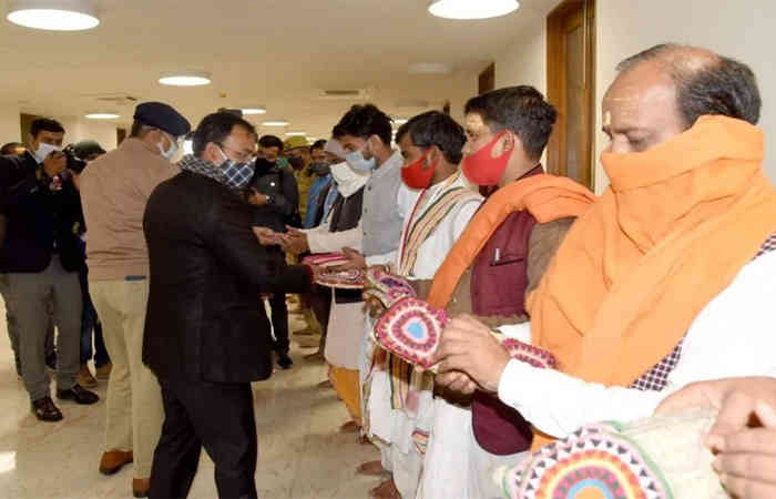 વડાપ્રધાન મોદીના નિર્દેશ બાદ તમામ કર્મચારીઓ માટે જ્યુટના 100 પગરખાં મોકલવામાં આવ્યા હતા. વિભાગીય કમિશનર દીપક અગ્રવાલે રવિવારે મંદિરમાં કામ કરી રહેલા શાસ્ત્રી, પુજારી, સીઆરપીએફના જવાનો, પોલીસકર્મી, સેવાદાર અને સફાઈકર્મીઓને પગરખાંનું વિતરણ કર્યું હતું. આ સાથે જ તેમણે હજું વધારે પગરખાં આવશે જેનું ફરજ પરના કર્મચારીઓમાં વિતરણ કરવામાં આવશે તેવી માહિતી આપી હતી.