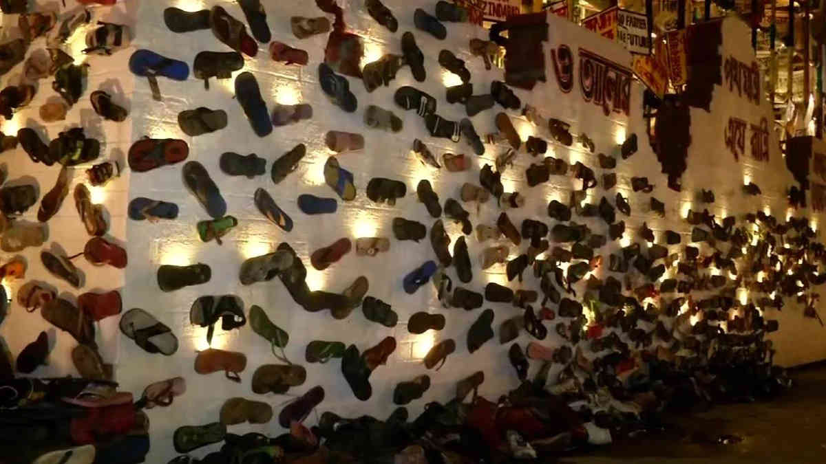 કોલકાતાઃ દુર્ગા પૂજા પંડાલને 'જોડાં' વડે શણગાર્યો, BJP-VHP દ્વારા વિરોધ, આયોજકોએ કરી સ્પષ્ટતા