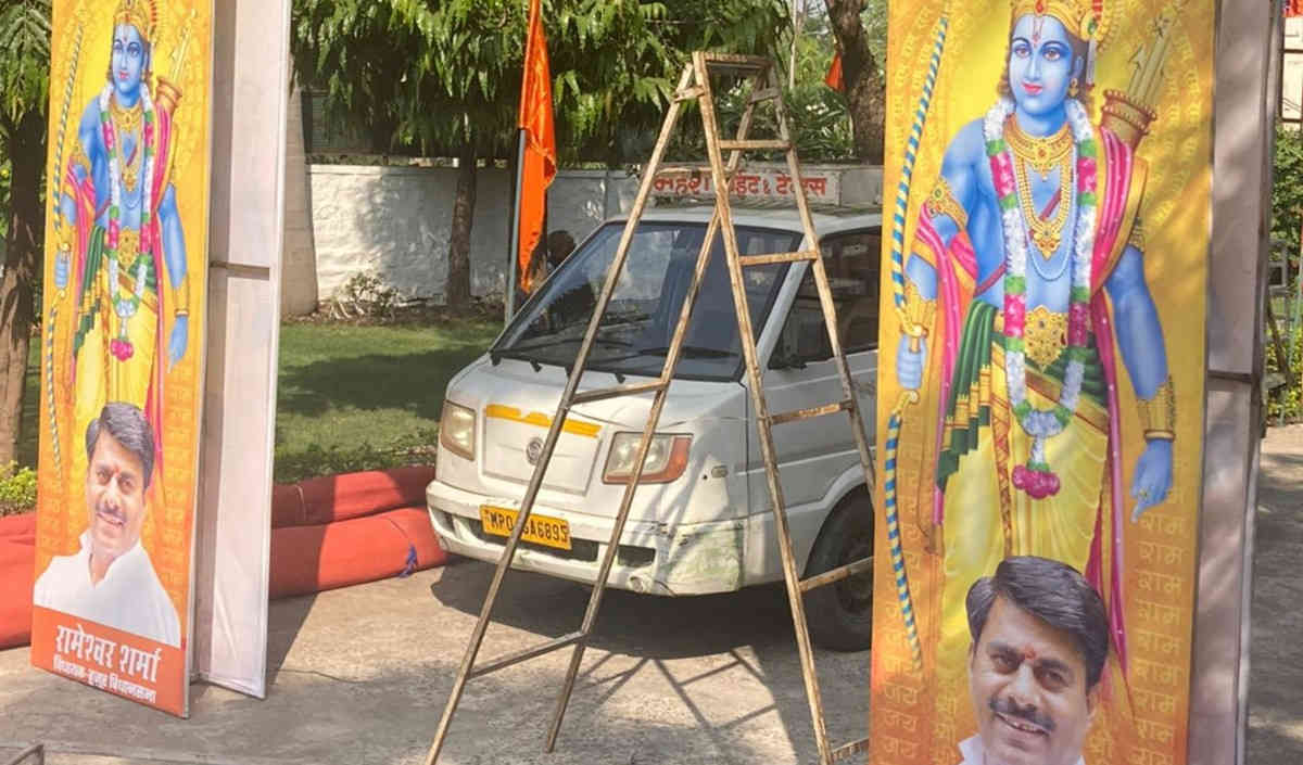 ભોપાલના ધારાસભ્ય રામેશ્વર શર્માનું કાર્યાલય પૂર્વ મુખ્યમંત્રી દિગ્વિજય સિંહના સ્વાગત માટે તૈયાર છે અને ત્યાં ખાસ પ્રકારનો શણગાર જોવા મળી રહ્યો છે. હકીકતે પૂર્વ મુખ્યમંત્રી અને રાજ્યસભા સાંસદ દિગ્વિજય સિંહે થોડા દિવસ પહેલા એવી જાહેરાત કરી હતી કે, તેઓ ધારાસભ્ય રામેશ્વર શર્માના ઘરે જશે અને ત્યાં રામધૂન કરશે. રામેશ્વર શર્માનો એક વીડિયો વાયરલ થયો હતો જેમાં તેઓ કોંગ્રેસી નેતાઓના ટાંટિયા તોડવાનું કહેતા સંભળાયા હતા. તેના જવાબમાં દિગ્વિજય સિંહે રામધૂન ગાવાની વાત કરી હતી.