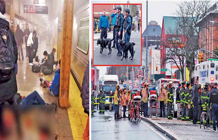 ન્યૂયોર્ક : ન્યૂયોર્કના બ્રુકલિનમાં એક મેટ્રો સ્ટેશન પર મંગળવારે સવારે એક હુમલાખોરે અંધાધૂંધ ગોળીબાર કરતાં ૧૦ લોકોને ગોળી વાગતા નાસભાગ મચી ગઈ હતી. જોકે, આ હુમલામાં કોઈ જાનહાની થઈ નથી તેમ ન્યૂયોર્ક પોલીસ વિભાગના એક અધિકારીએ જણાવ્યું હતું. આ ઘટનાને પગલે હાઈએલર્ટ જાહેર કરાઈ હતી. પ્રારંભિક અહેવાલોમાં આ આતંકી હુમલો હોવાનું અને સ્ટેશન પર વિસ્ફોટક સામગ્રી જણાવાયું હતું. જોકે, પાછળથી એનવાયપીડીના અધિકારીએ કહ્યું કે સ્ટેશન પર કોઈ વિસ્ફોટક ડિવાઈસ મળી આવી નથી. જોકે, પોલીસ ગેસ માસ્ક અને બંડી પહેરેલા હુમલાખોરને શોધે છે. પોલીસે હુમલાખોરનો સ્કેચ જાહેર કર્યો હતો.