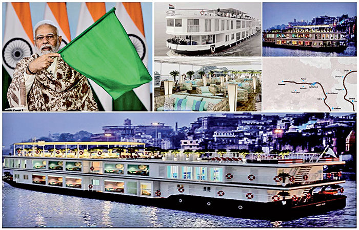 વડાપ્રધાન નરેન્દ્ર મોદીએ વિશ્વના સૌથી વિશાળ ક્રૂઝને તરતું મૂકતા કહ્યું હતું: વિકસિત ભારતના નિર્માણ માટે બહેતર કનેક્ટિવિટી જરૂરી છે. ભારત હવે ઝડપભેર બદલાઈ રહ્યું છે. ભારત દુનિયાભરના પ્રવાસીઓને આકર્ષી રહ્યું છે અને ભારત બધા જ ધર્મોને સમાન આદર આપતું હોવાથી વિદેશી પ્રવાસીઓને પ્રિય થઈ પડયું છે. સ્વિટ્ઝર્લેન્ડના ૩૨ પ્રવાસીઓએ ક્રૂઝની પ્રથમ મુસાફરી બુકિંગ કરી હતી. એને સંબોધન કરતી વખતે મોદીએ કહ્યું હતું કે આજે ભારત પાસે બધું જ છે, તમારી કલ્પના કરતાં વધારે અનુભવોનું ભાથું બાંધી શકશો. વડાપ્રધાને કહ્યું હતું કે ભારતમાં પાણી માર્ગે પ્રવાસ ઓછો થઈ રહ્યો છે.  વિશાળ દરિયાકાંઠો અને મોટી નદીઓ હોવા છતાં જળ માર્ગે પ્રવાસ ઓછો થતો હોવાથી એ દિશાના વિકાસકાર્યો શરૂ થયા છે. ૨૦૧૪ પહેલાં દેશમાં માત્ર પાંચ જળમાર્ગો હતો, જે હવે વધીને ૧૧૧ થઈ ગયા છે અને એમાંથી બે ડઝન તો કાર્યરત પણ થઈ ચૂક્યા છે. પશ્વિમ બંગાળ, આસામ, યુપી અને બિહાર માટે મોદીએ ૧૦૦૦ વોટરવે પ્રોજેક્ટની જાહેરાત કરી હતી.