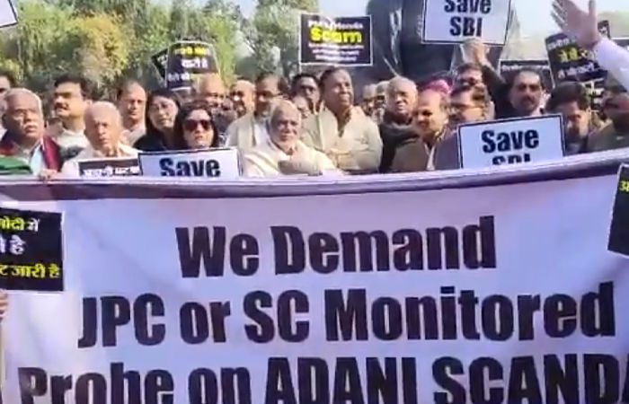 અદાણીનો મામલો ફરીવાર સંસદમાં ગૂંજ્યો છે. આ દરમિયાન બજેટ સત્ર શરૂ થતાં જ અદાણી મામલે વિપક્ષી દળોના તમામ નેતા સંસદ પરિસરમાં આવેલી ગાંધી પ્રતિમાની સામે એકજૂટ થયા હતા અને દેખાવ કર્યા હતા. ત્યારબાદ બજેટ સત્ર શરૂ થતા જ રાજ્યસભા અને લોકસભા બંને ગૃહોમાં વિપક્ષી એકજૂટ થઇને સરકારને ઘેરી હતી અને ભારે હોબાળો મચાવતા બંને ગૃહોને 2 વાગ્યા સુધી સ્થગિત કરવાની જાહેરાત કરાઈ હતી.