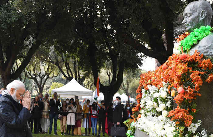‘મોદી-મોદી’ના નારા ગુંજી ઉઠી રોમની ગલીઓ, બાપુની પ્રતિમાને અર્પિત કર્યા શ્રદ્ધા સુમન