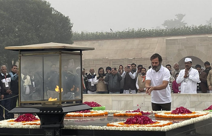 કોંગ્રેસ નેતા રાહુલ ગાંધી આજે સવારે મહાત્મા ગાંધીને શ્રદ્ધાંજલિ આપવા ‘રાજઘાટ’ પહોંચ્યા હતા. ઉપરાંત, તેમણે દેશના પ્રથમ વડાપ્રધાન પંડિત જવાહરલાલ નેહરુને પણ ‘શાંતિવન’ પહોંચીને શ્રદ્ધાંજલિ આપી હતી. આ પહેલા રાહુલ ગાંધી પૂર્વ પીએમ ઈન્દિરા ગાંધીને ‘શક્તિ સ્થળ’ પર અને પૂર્વ પીએમ રાજીવ ગાંધીને ‘વીર ભૂમિ’ ખાતે શ્રદ્ધાંજલિ આપી હતી. શ્રદ્ધાંજલિ આપતી વખતે રાહુલ ગાંધી ખુલ્લા પગે દેખાયા હતા.