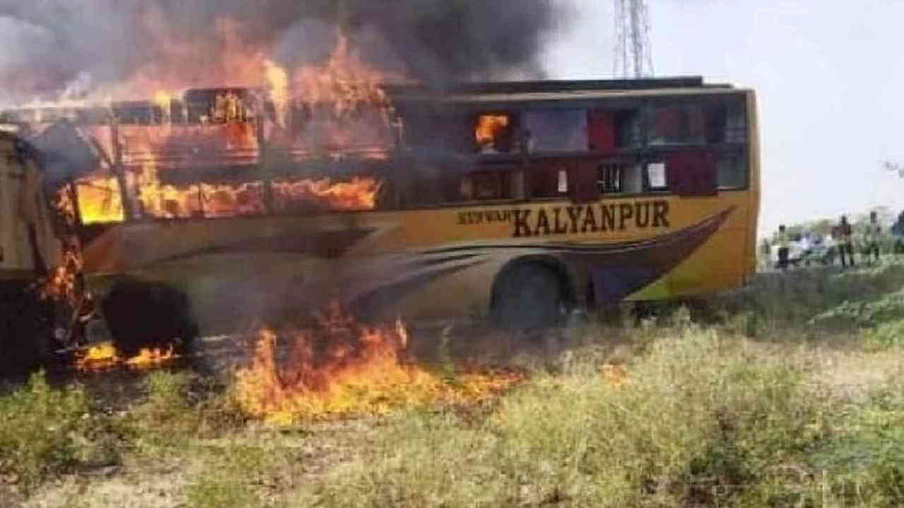 બસમાં લાગેલી આગ એટલી ભયંકર હતી કે બસનો મોટાભાગનો હિસ્સો બળીને ખાક થઈ ગયો હતો.