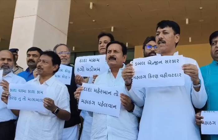 વિધાનસભા બહાર કોંગ્રેસના ધરણાં, શૈલેષ પરમારે કહ્યું કિરણ પટેલની ચર્ચાથી દૂર ભાગે છે સરકાર