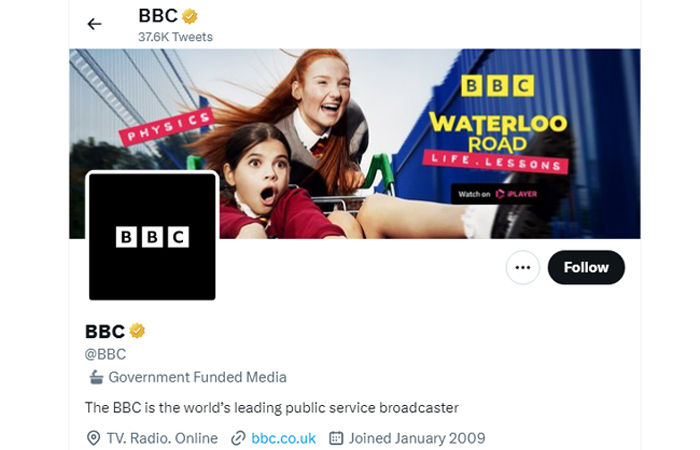 ટ્વિટરે તેની નવી પોલિસી હેઠળ બીબીસીને સરકારી મીડિયા ગણાવતા ગોલ્ડન ટિક આપી છે. રર લાખ ફોલોવર ધરાવતા બીબીસીના ટ્વિટર હેન્ડલ પર તમને હવે સરકારના ફંડ દ્વારા સંચાલિત મીડિયા લખેલું દેખાશે. બીબીસીએ તેનો વિરોધ કર્યો હતો. બીબીસીએ કહ્યું કે આ મુદ્દાને જલદીથી જલદી ઉકેલવા માટે ટ્વિટર સાથે વાતચીત ચાલી રહી છે.