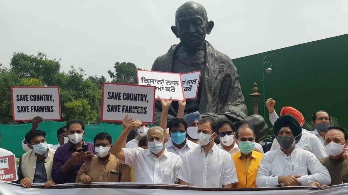 સંસદ પરિસરમાં કૃષિ કાયદા વિરૂદ્ધ પ્રદર્શન, રાહુલ ગાંધી સહિત અનેક કોંગ્રેસી સાંસદો સામેલ