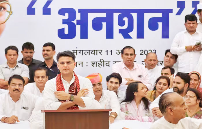 મહાત્માજીની સ્મૃતિમાં અહીં રચાયેલાં શહીદ સ્મારક સ્થળે ઉપવાસ ઉપર ઉતરેલા પાયલોટનું નિશાન તો પક્ષમાં જ રહેલા તેમના પ્રતિસ્પર્ધી રાજસ્થાનના મુખ્યમંત્રી અશોક ગેહલોત છે. તેમની ઉપર પાયલોટનો આક્ષેપ છે કે તેઓ ભાજપનાં નેતા વસુંધરા રાજે સામે શા માટે પગલાં લેતા નથી ?