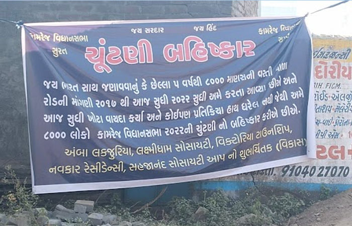 સુરતમાં મતદાન પહેલા બહિષ્કાર બેનરના કારણે રાજકારણીઓની ચિંતામાં વધારો