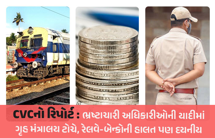 ગત વર્ષે ભ્રષ્ટાચારની સૌથી વધુ ફરિયાદો કેન્દ્રીય ગૃહ મંત્રાલયના અધિકારીઓ વિરુદ્ધ કરવામાં આવી હતી. તેના પછી રેલવે અને બેન્ક અધિકારીઓ સામે સૌથી વધુ ફરિયાદો મળી છે. તાજેતરમાં જારી કરાયેલા સેન્ટ્રલ વિઝિલન્સ કમીશન (CVC) ના વાર્ષિક રિપોર્ટમાં આ જાણકારી સામે આવી છે.