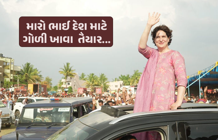 પ્રિયંકાએ કહ્યું કે હિમ્મત રાખો મોદીજી. મારા ભાઈ રાહુલ ગાંધીથી શીખો. મારો ભાઈ કહે છે કે તે દેશ માટે ગાળો જ નહીં પણ ગોળીએ ખાવા તૈયાર છે. મારો ભાઈ કહે છે કે તે સત્ય માટે ઊભો રહેશે ભલે ગાળો આપો, ગોળી મારો કે ચપ્પું મારો.