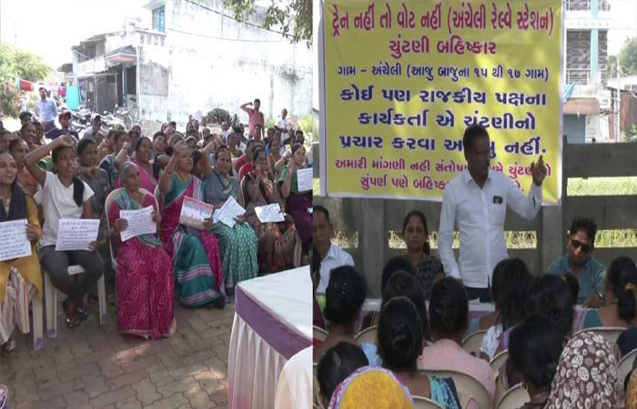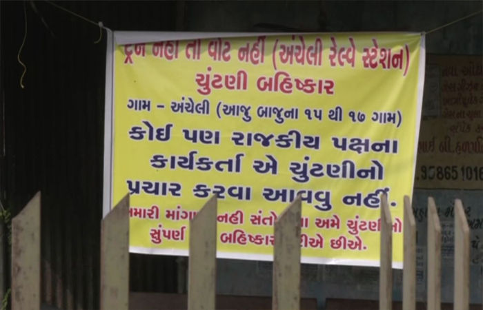 રેલ્વે યુઝર્સ એડવાઈઝરી કમિટીના ઝોનલ મેમ્બર છોટુભાઈ પાટીલે કહ્યું કે, અહીં લોકોએ હાથમાં પોસ્ટર લઈને વોટ ન આપવાની જાહેરાત કરી છે. ઘણા લોકો પ્રદર્શન કરી રહ્યા છે. તેના હાથમાંના પોસ્ટરો પર ‘નો ટ્રેન, નો વોટ’ લખેલું છે. એટલું જ નહીં આ લોકોએ તમામ રાજકીય પક્ષોને ચૂંટણી પ્રચાર માટે ગામની મુલાકાત ન લેવા પણ કહ્યું છે.