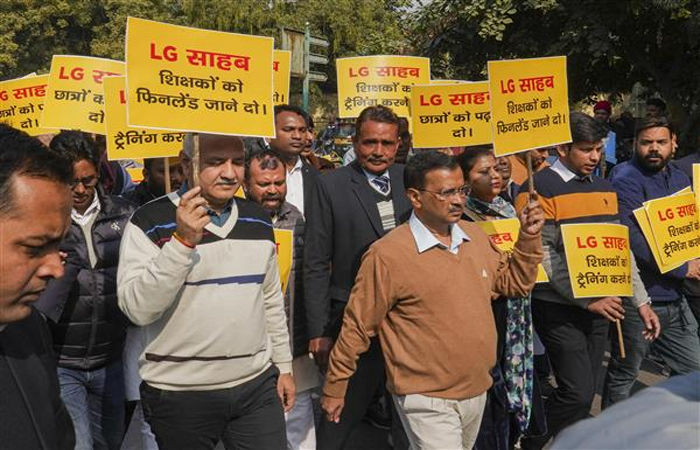 દિલ્હીમાં કેજરીવાલ સરકાર અને LG વી.કે. સક્સેના વચ્ચેનો વિવાદ અટકવાની જગ્યાએ દરરોજ એક નવા સ્તરે પહોંચી રહ્યો છે. સોમવારના રોજ આમ આદમી પાર્ટી (AAP) ના ધારાસભ્યોએ વિધાનસભામાં પહેલા LG વી.કે. સક્સેના પર પ્રહાર કર્યા હતા અને ત્યારબાદ તેમના આવાસ સુધી રેલી કરી હતી. સીએમ અરવિંદ કેજરીવાલ પોતે રસ્તા પર આવ્યા હતા અને LG પર અનેક આરોપો લગાવ્યા હતા. તેમણે કહ્યું હતું કે LGએ દિલ્હીના શિક્ષકોને વિદેશ મોકલતા અટકાવ્યા છે. તેઓ દિલ્હીના બાળકોનું સારું શિક્ષણ રોકવા માંગે છે.